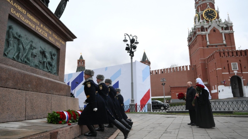Президент РФ Владимир Путин и патриарх Московский и всея Руси Кирилл на церемонии возложения цветов к памятнику Кузьме Минину и Дмитрию Пожарскому на Красной площади в День народного единстваДзенMaxTelegram