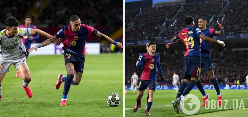Первые мгновения матча попытались намекнуть, что скучно не будет. «Бенфика» несколькими контратаками показала, что ее рано еще списывать со счетов, несмотря на тотальное отсутствие реализации неделю назад в Лиссабоне. «Барселона» дома хотела сделать все, чтобы с помощью родных стен превратить матч в победный. Не повлияла на это даже отсутствие Кубарси, выходила основа. Эмоциональным взрывом стала перестрелка: фантастический сольный проход Ямаля с передачей на Рафинью, а затем появление Отаменди под отскок. Два красивых гола с точки зрения выбора позиции голеадоров и проблем защиты именно здесь и сейчас.
